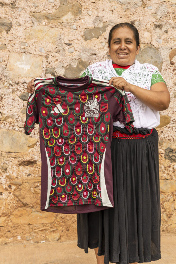 En 2023, Someone Somewhere dio un giro importante cuando empezó a integrar la IA en su proceso creativo. Usando Stable Diffusion, un modelo que genera imágenes a partir de texto, comenzaron a diseñar productos para mostrar cómo marcas globales, como Adidas o Red Bull, podrían incorporar la artesanía mexicana en sus líneas de productos. Un diseño viral de un jersey de la Selección Mexicana de fútbol, inspirado en bordados artesanales, fue el detonante que llevó a una colaboración con Adidas. Poco después, lanzaron una colección de jerseys bordados a mano por mujeres artesanas de la Sierra Norte de Puebla.